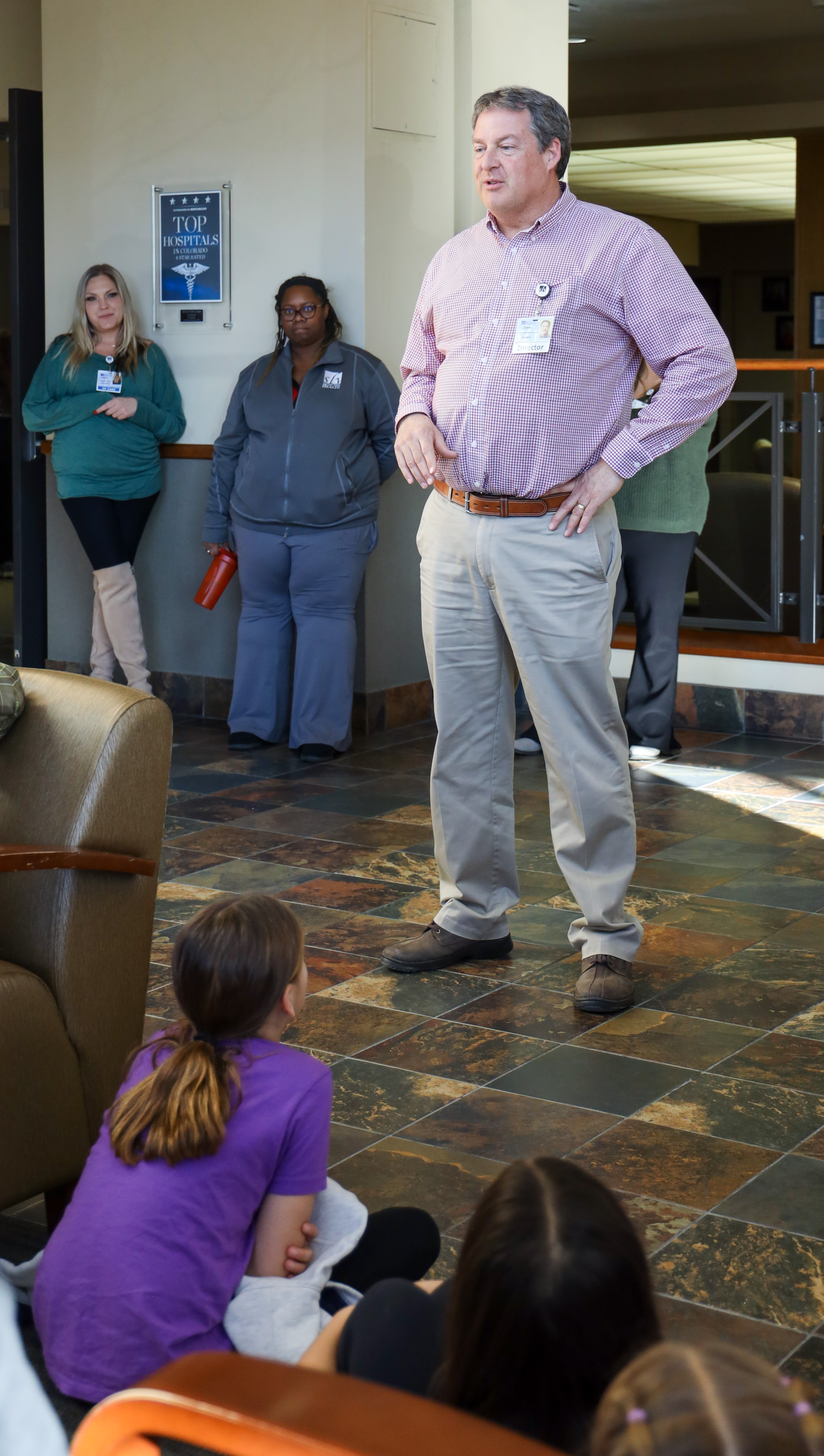Brent Lehto, Director of Laboratory Services, is teaching the children about Laboratory Services at the hospital, offering them an inside look at how this essential department operates and supports patient care.
